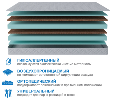 Две стороны жесткости обеспечат комфортный сон. Огнеупорный жакард, очень приятен на ощупь и обладает гипоалергенным свойствами и при этом не поддерживает горение. Рекомендовано использование вместе с защитным чехлом Aquastop.Подходит для кроватей с подъемным механизмом.