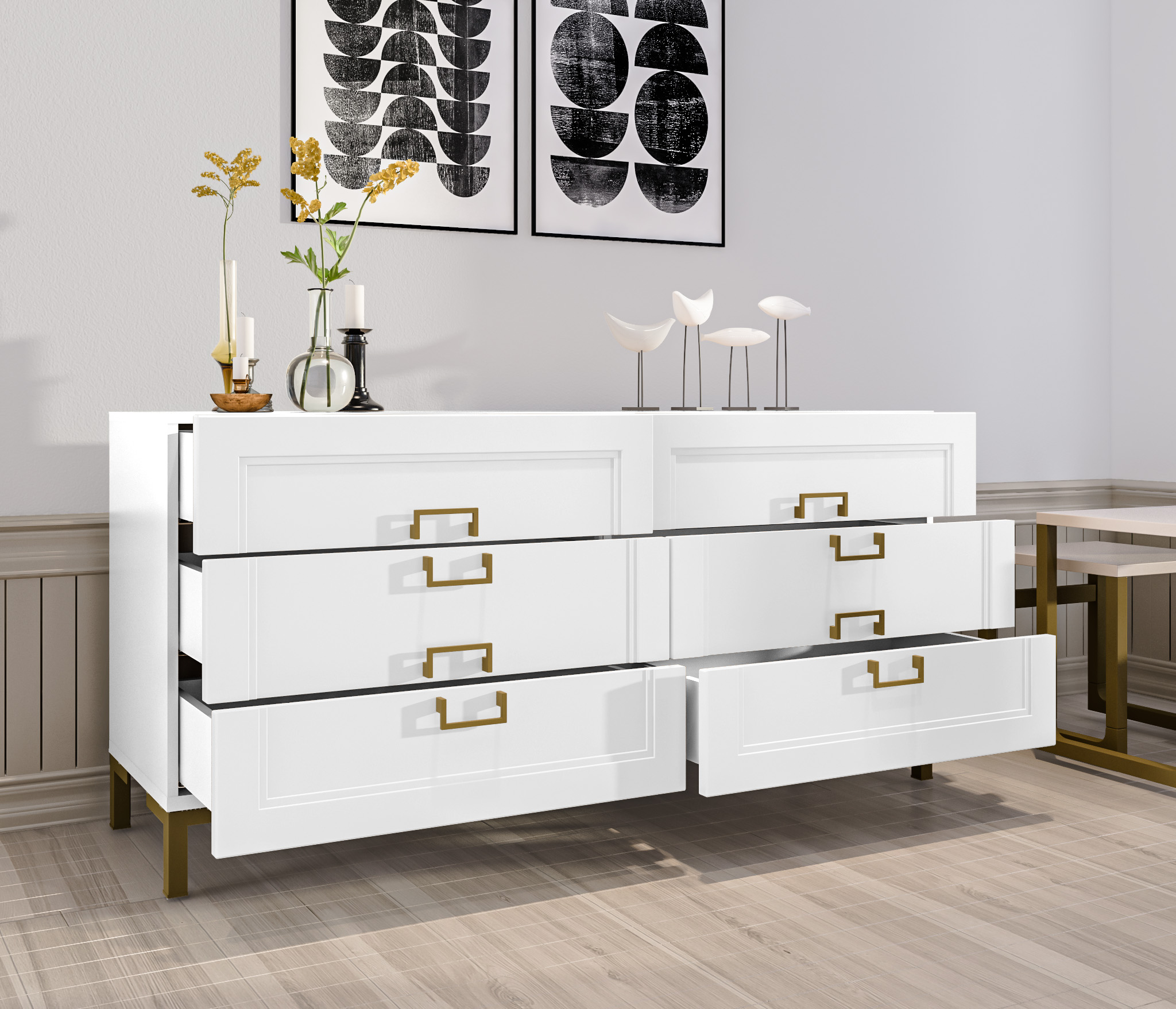 Золотистые ручки и ножки коллекции "Ассоль" добавляют неповторимый шик и изысканность, завершая образ тонким и стильным блеском. Эти акценты создают атмосферу роскоши и утонченности. Они играют роль визуального украшения, дополняя общий вид мебели и придавая ей особый шарм и элегантность.